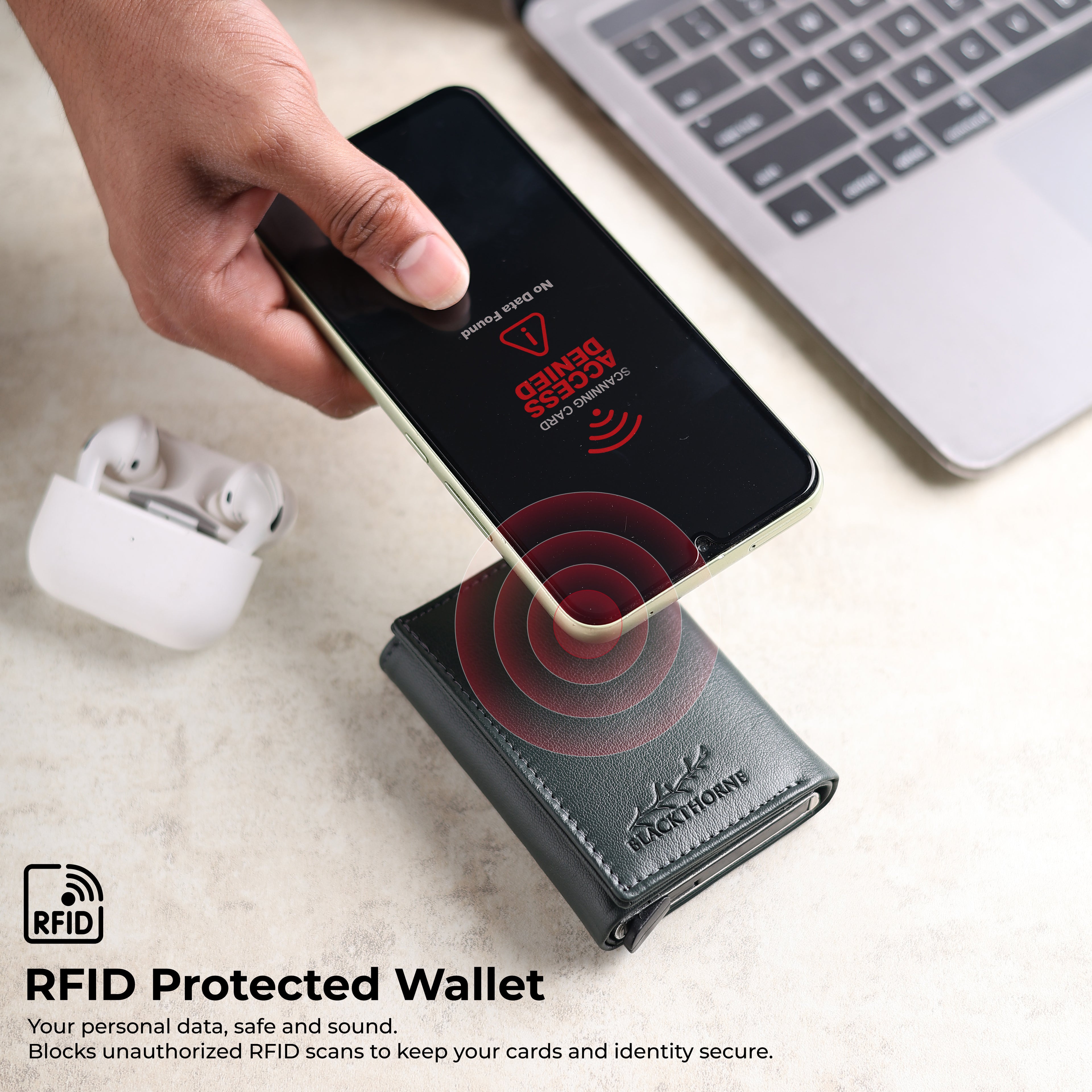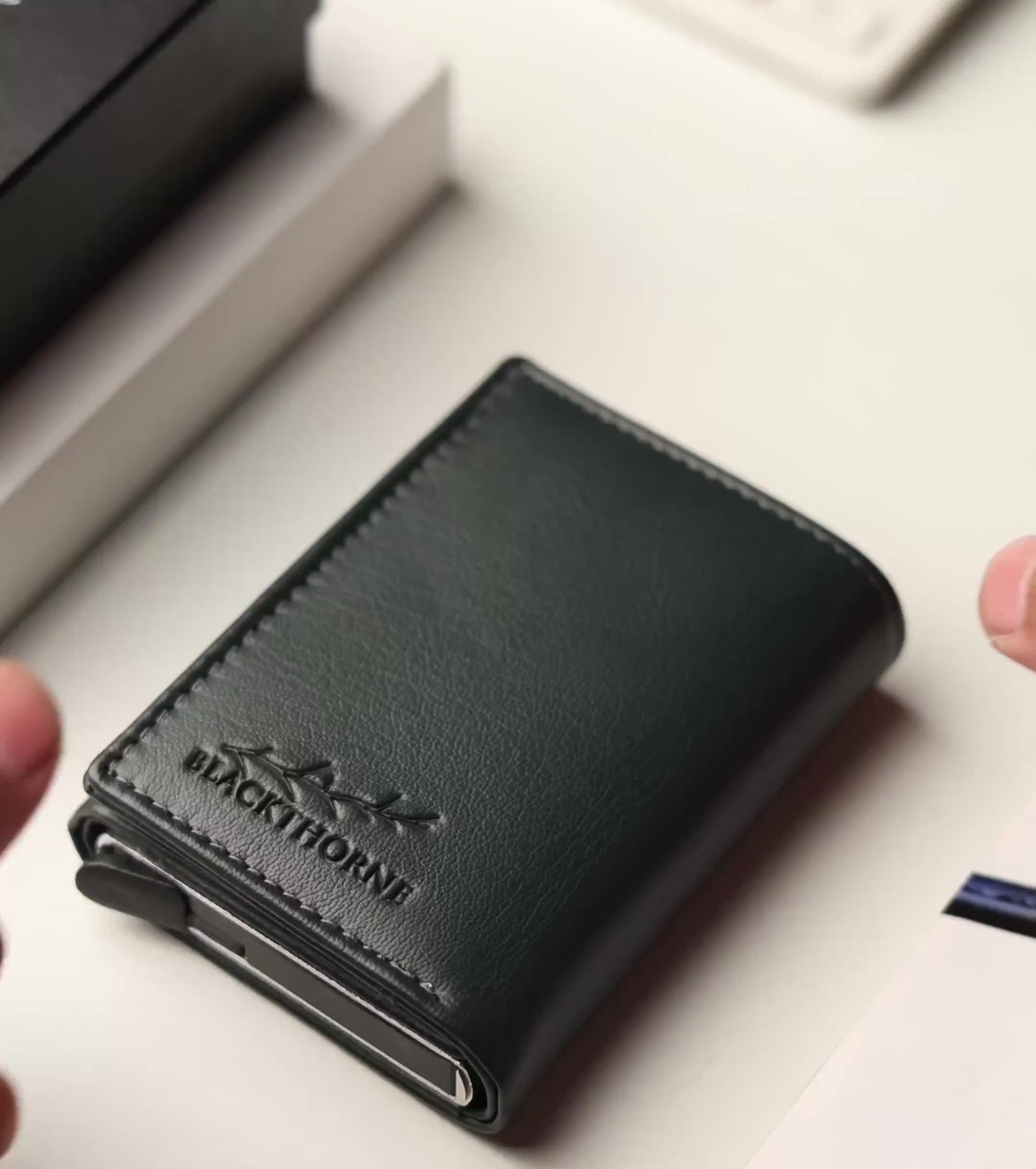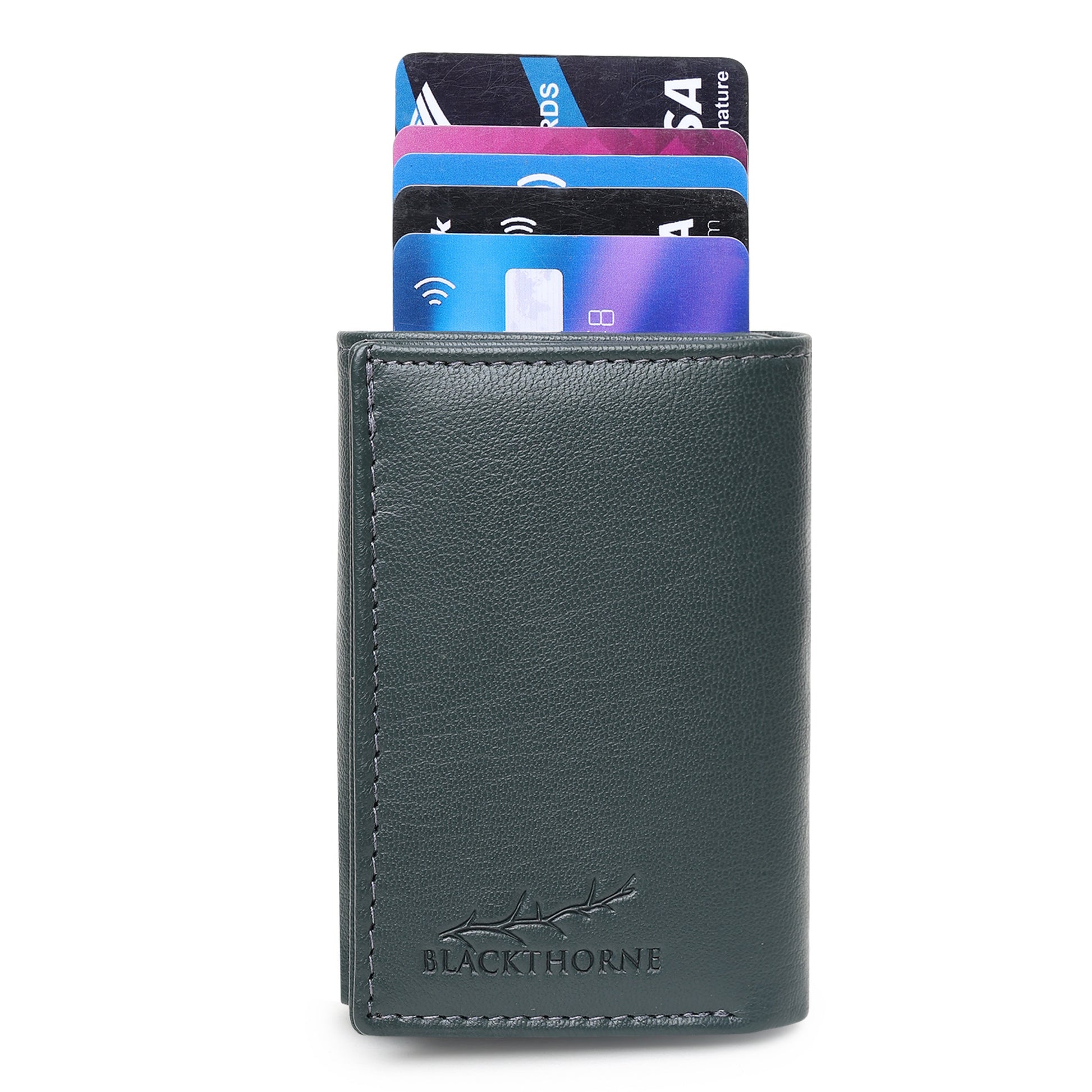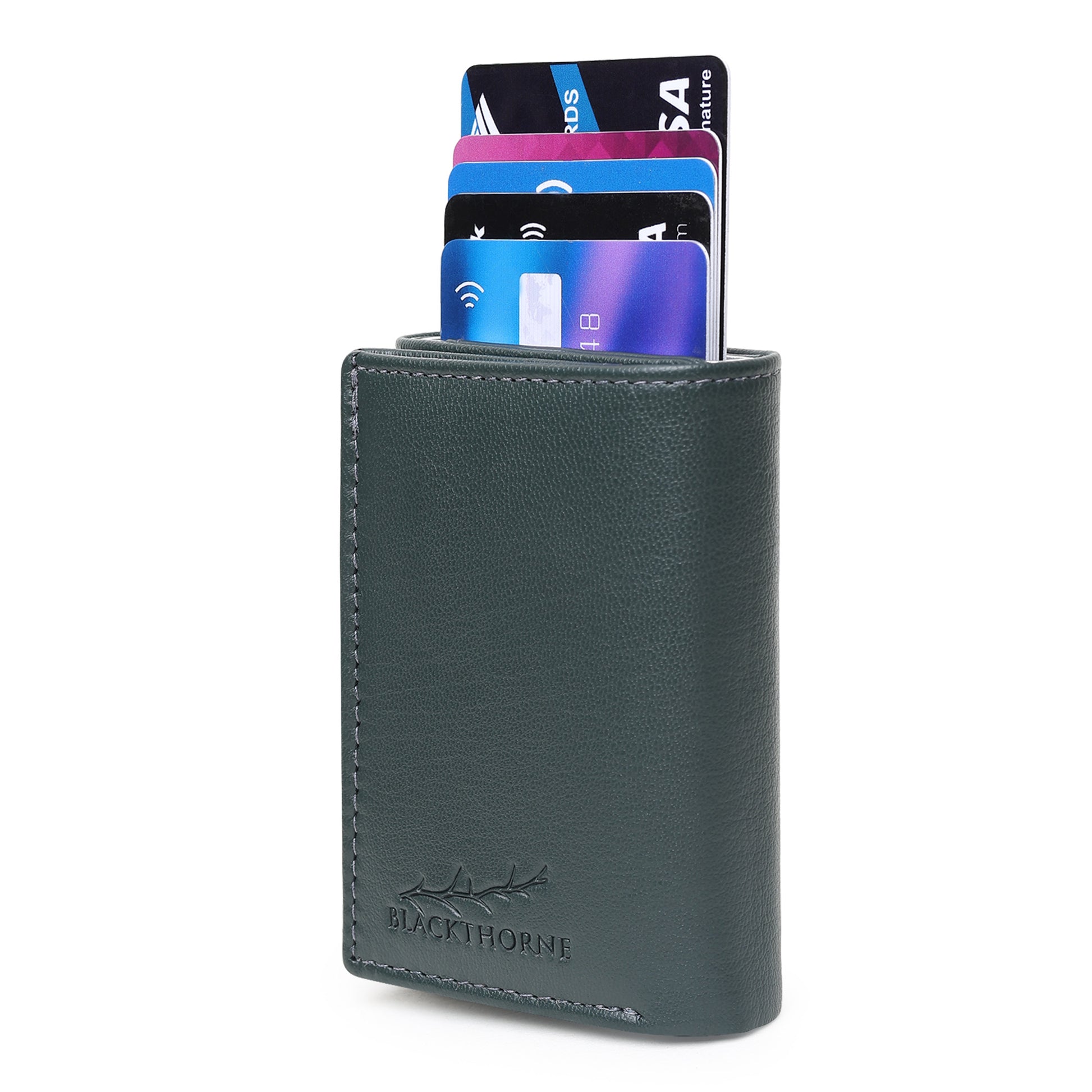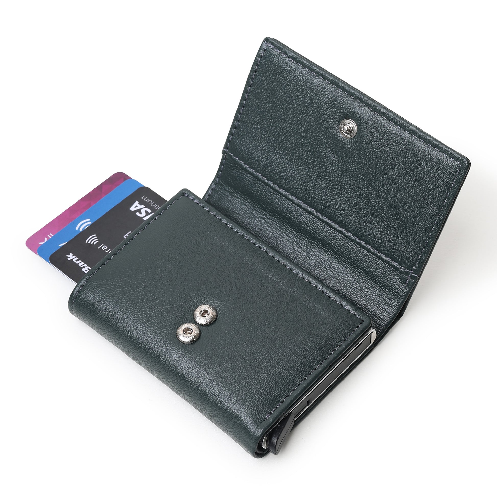 Pop-Up Card Access: Push a button for instant card access, no need to open the wallet.