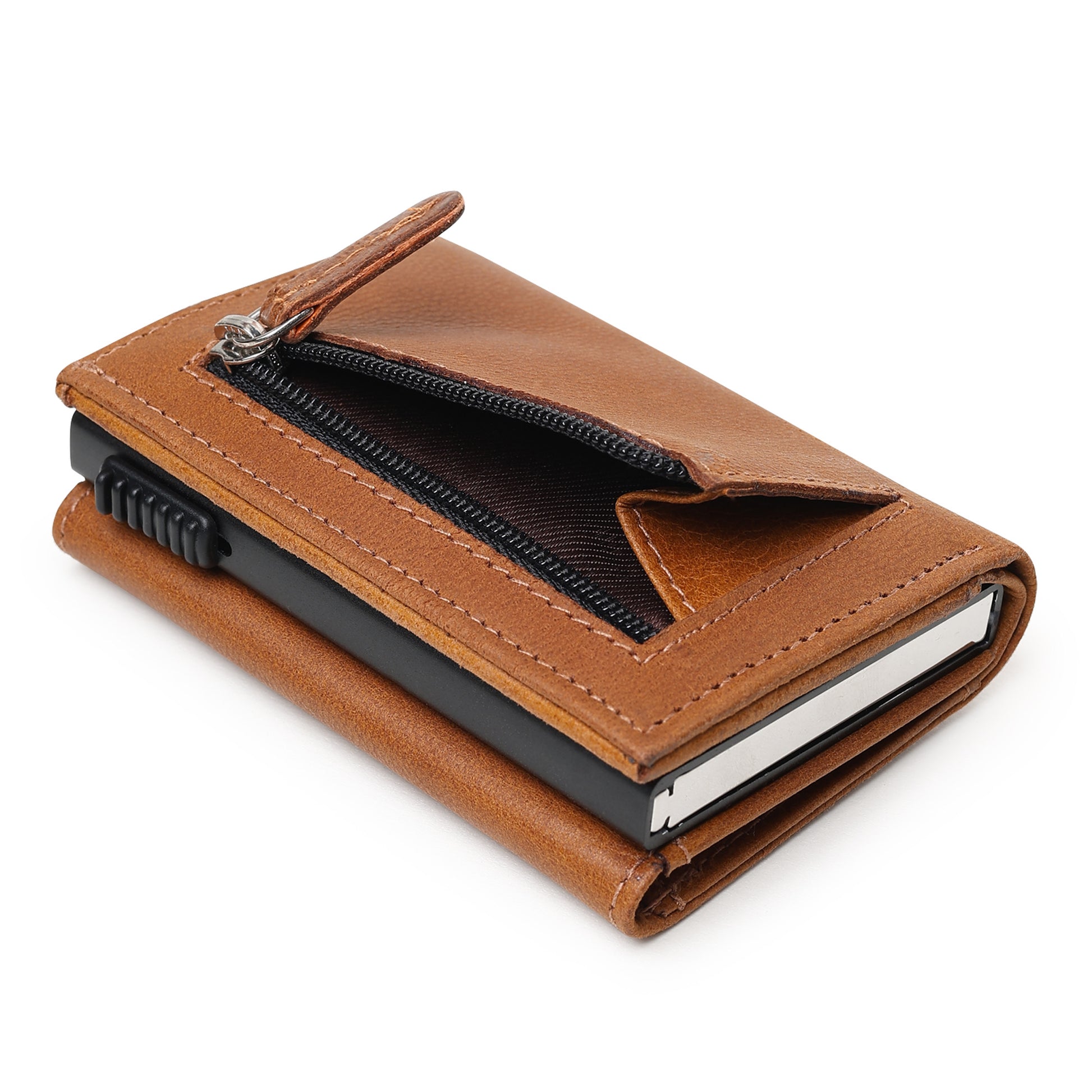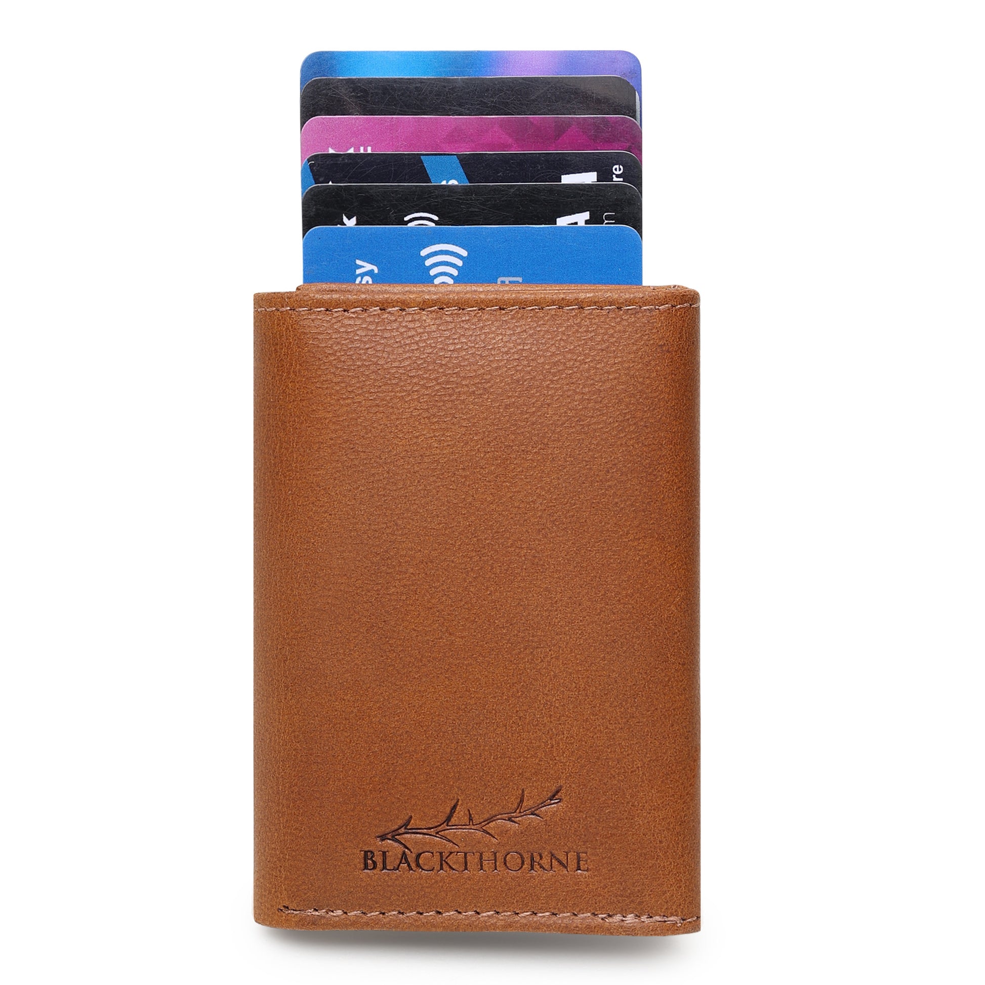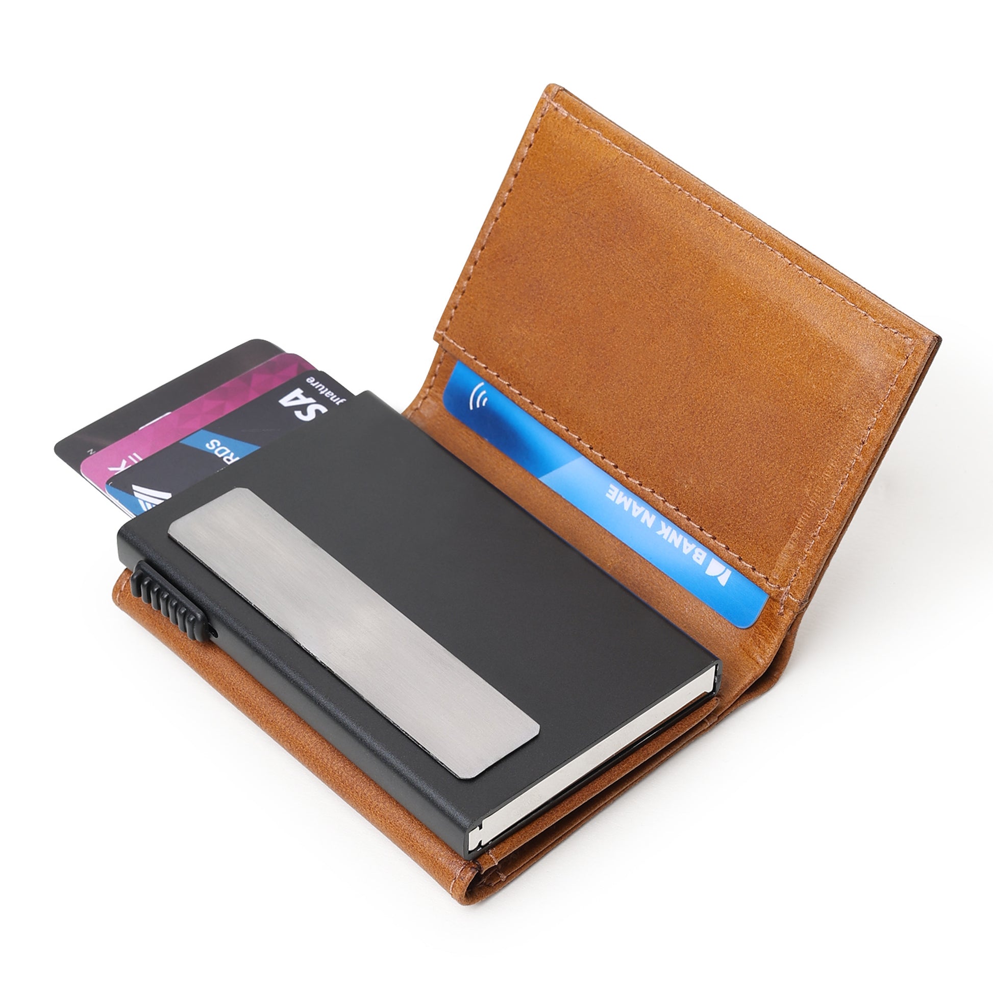 Pop-Up Card Access: Push a button for instant card access, no need to open the wallet.