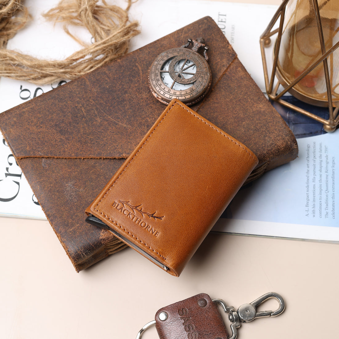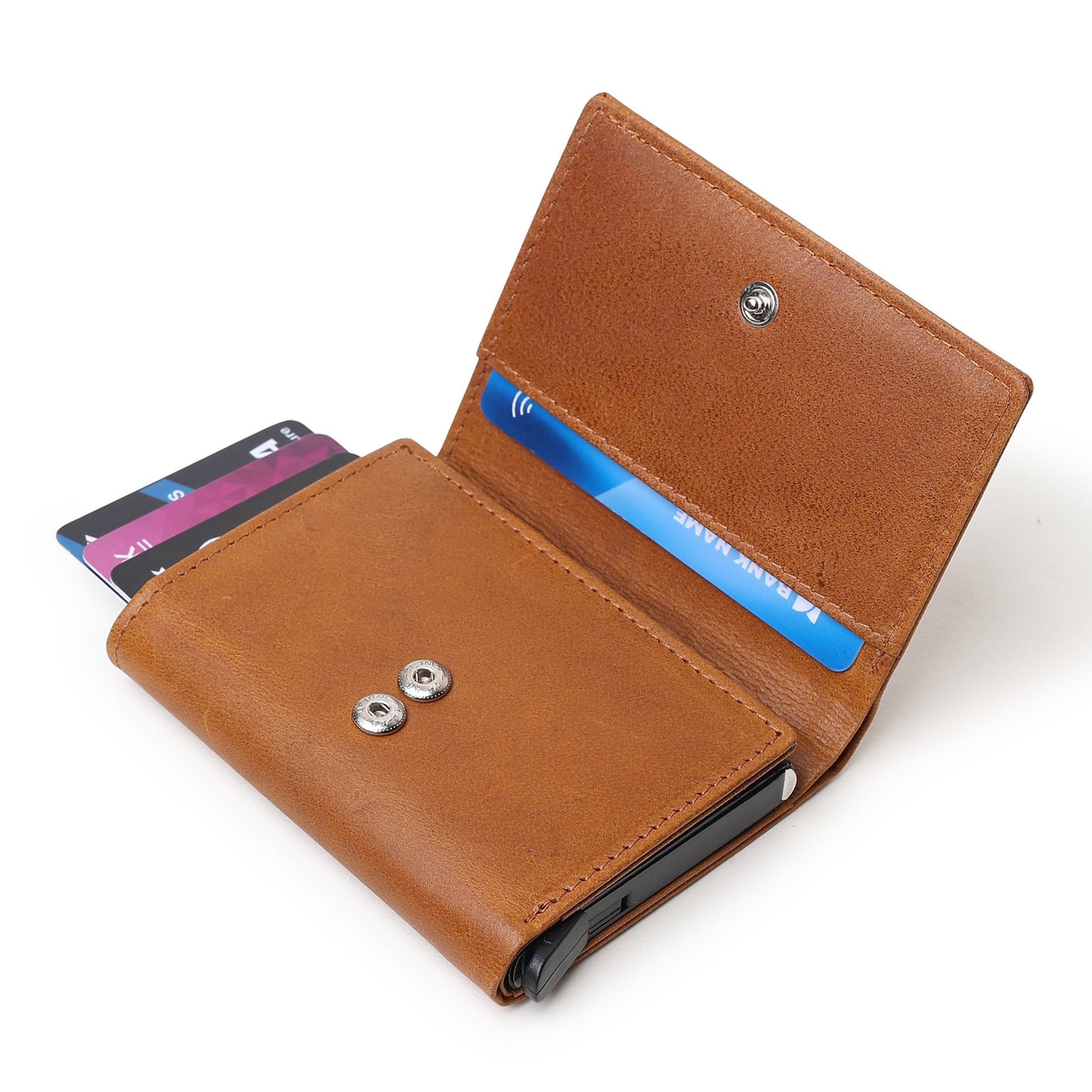Pop-Up Card Access: Push a button for instant card access, no need to open the wallet.